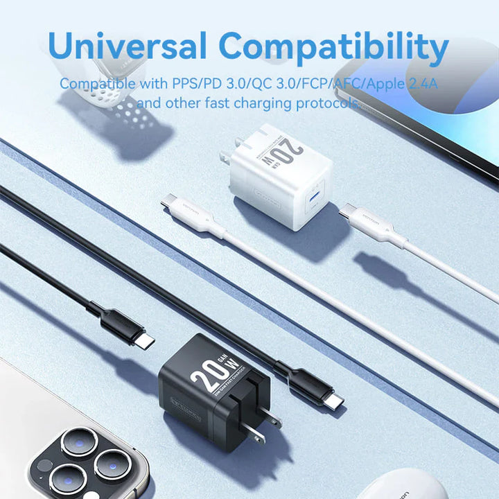 - Carga rápida y eficiente: Con una potencia de 20W, este cargador es ideal para cargar smartphones, tabletas y otros dispositivos USB-C rápidamente, garantizando que siempre estés listo para usar tus dispositivos.