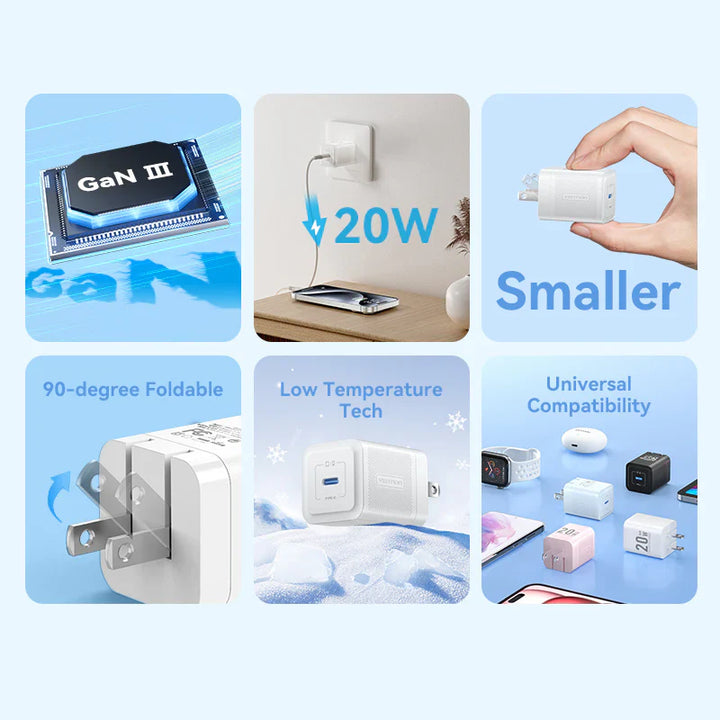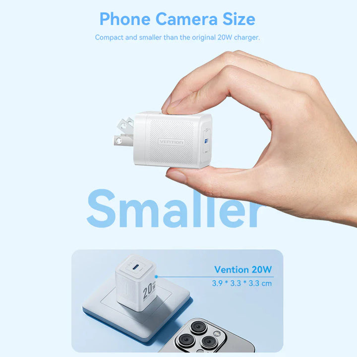 El Cargador Pared USB-C GaN 20W Vention es la elección perfecta para quienes buscan una carga rápida, eficiente y segura en un formato compacto y elegante.